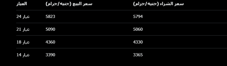وفقاً لتقارير السوق، سجلت الأعيرة المختلفة الآتي (دون إضافة المصنعية، وتشمل أسعار البيع والشراء):