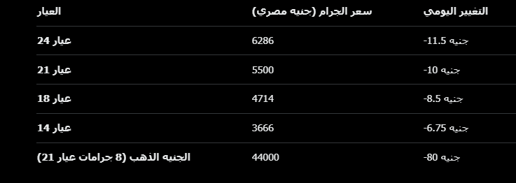بناءً على آخر تحديثات سوق الصاغة المصري، شهدت أسعار الذهب هبوطاً طفيفاً اليوم مقارنة بالأمس، متأثرة بتصحيحات فنية بعد الارتفاعات الأخيرة عالمياً.