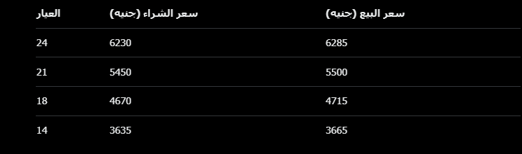 أسعار العيارات الرئيسية (بدون مصنعية):