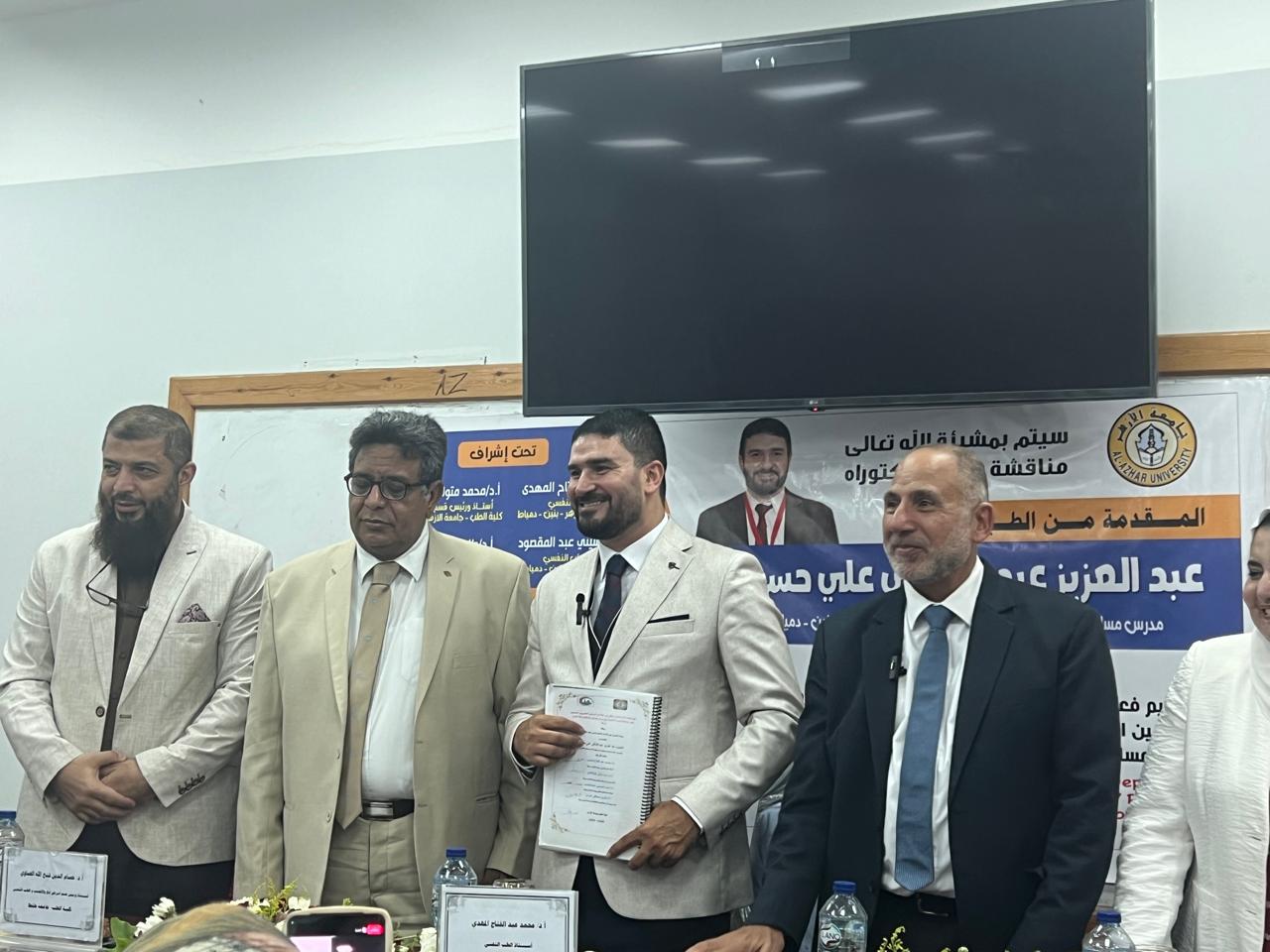 تم اليوم انعقاد مناقشة الدكتوراه للدكتور / عبد العزيز جاويش مدرس مساعد بجامعة الأزهر بدمياط